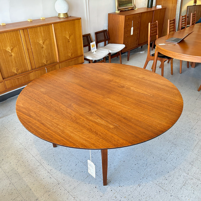 Comfortably seating up to eight guests, this round dining table is perfect for family dinners, formal gatherings, or creative meetings. Its look and design enhances its value as a collectible investment piece. Whether you’re furnishing a retro-inspired home or curating a modern eclectic space, this authentic mid-century walnut dining table delivers enduring style and quality.